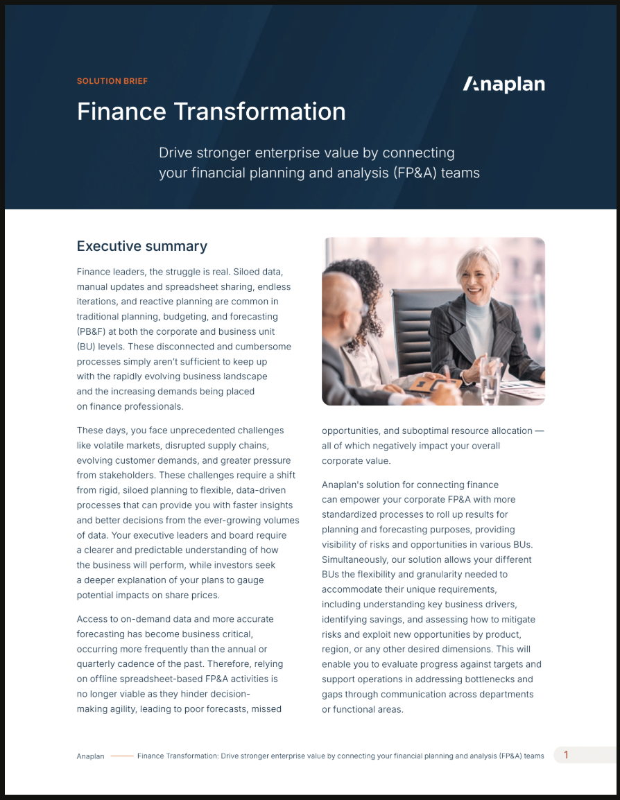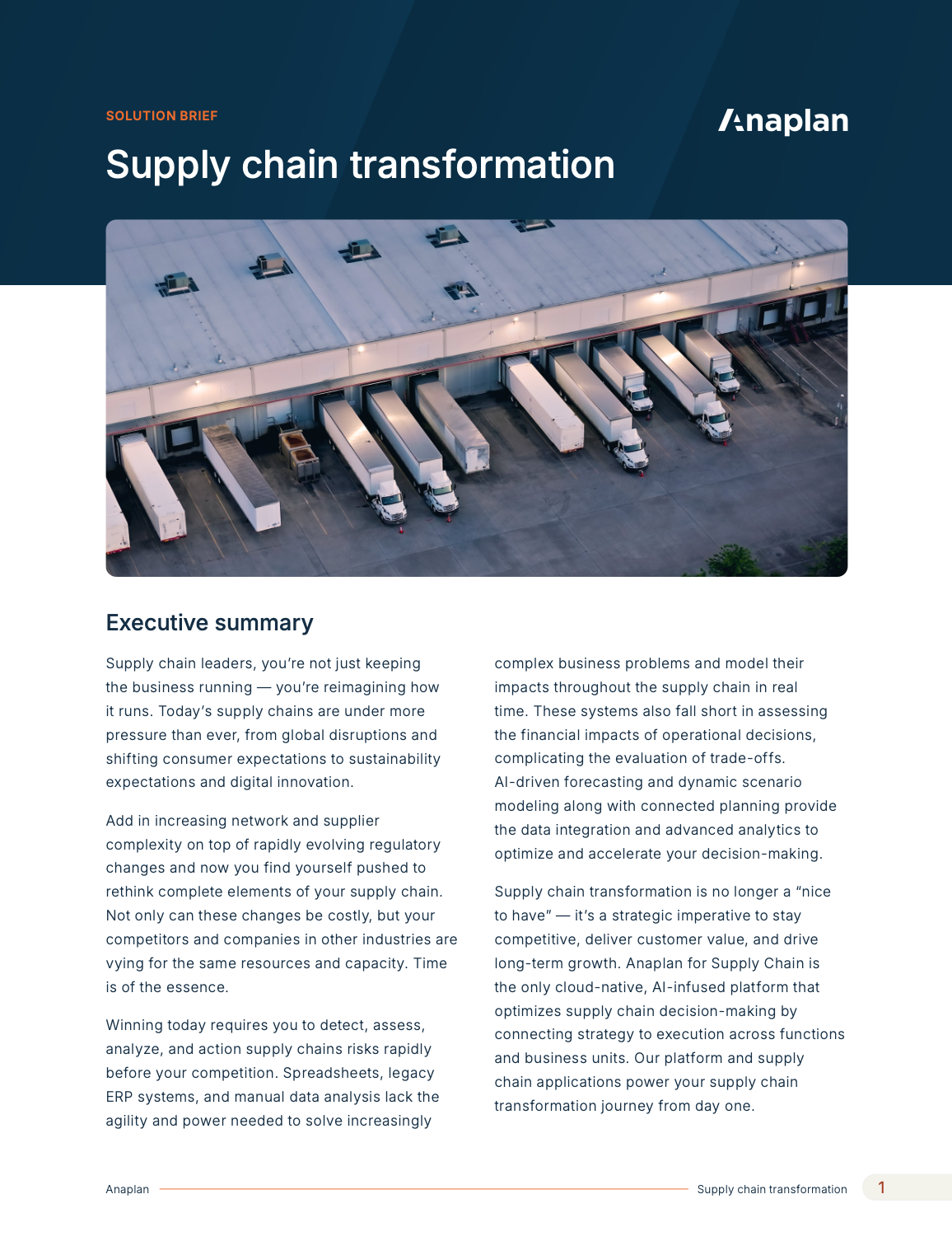 Supply chain transformation is no longer a “nice to have” — it’s a strategic imperative to stay competitive, deliver customer value, and drive long-term growth. Anaplan for Supply