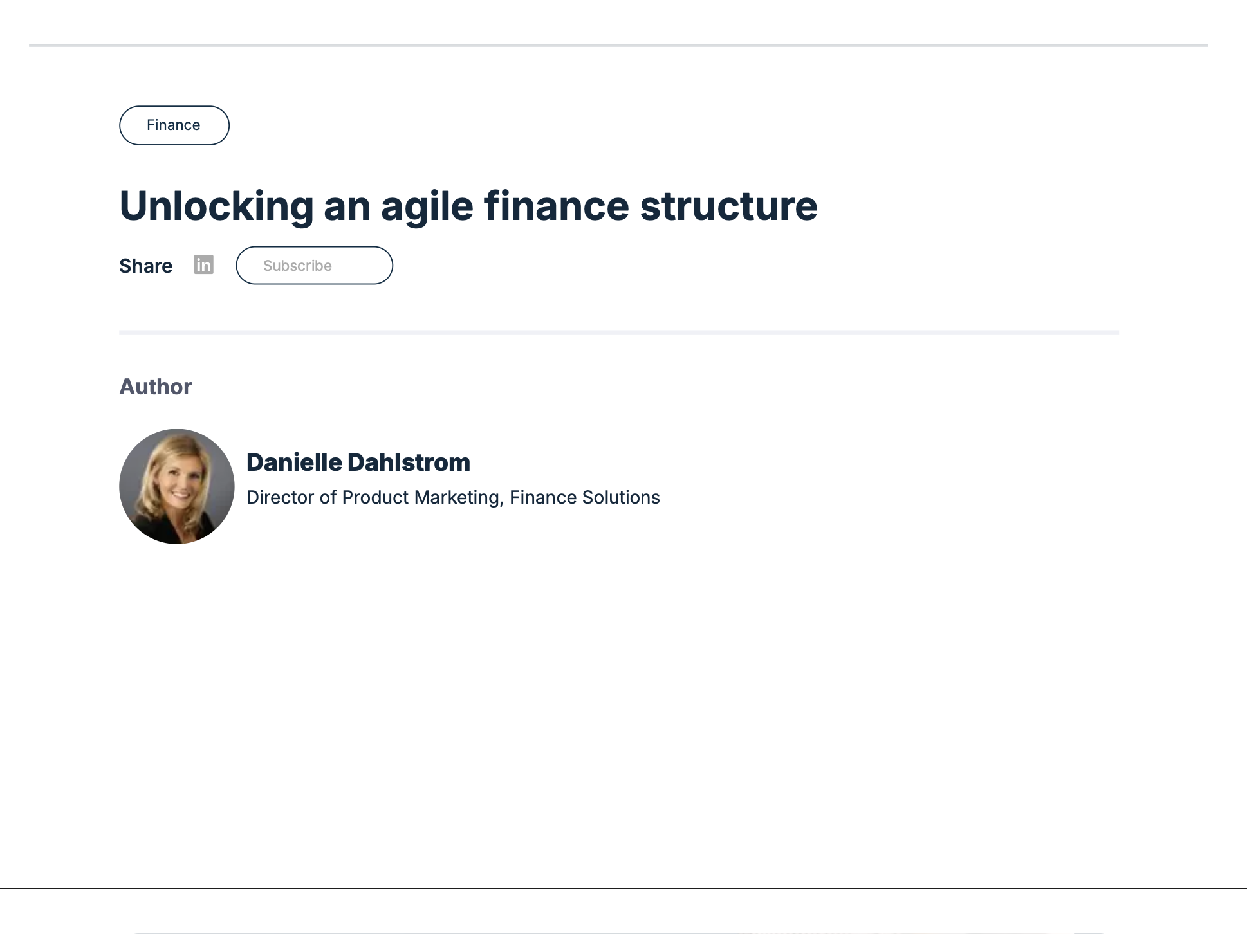 Your org is agile. Is your finance team? The modern business moves fast. Finance should, too In a world of shifting markets, evolving priorities, and real-time decisions, traditional